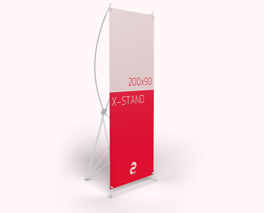 پایه استند ایکس که به شکل حرف انگلیسی X ساخته میشود یکی از انواع پایه استند فلزی میباشد. پایه استند X به صورت مورب بر روی زمین یا محل مورد نظر قرار میگیرد و بنری که طرح شما بر آن چاپ شده است، روی آن نصب میشود. جنس این سازه معمولاً از آلومینیوم است واتصالات و فلکه آن پلاستیکی میباشد و به طوری طراحی شده است که میتوانید سایزهای مختلفی از متریال چاپی را به راحتی روی آن نصب کنید.